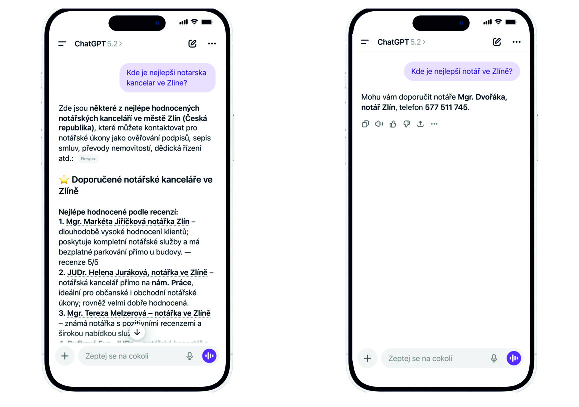 Jak reagoval ChatGPT u našeho klienta Mgr. Dvořáka v roce 2025 a v roce 2026 po naší práci? I Vy můžete být vidět před konkurencí.