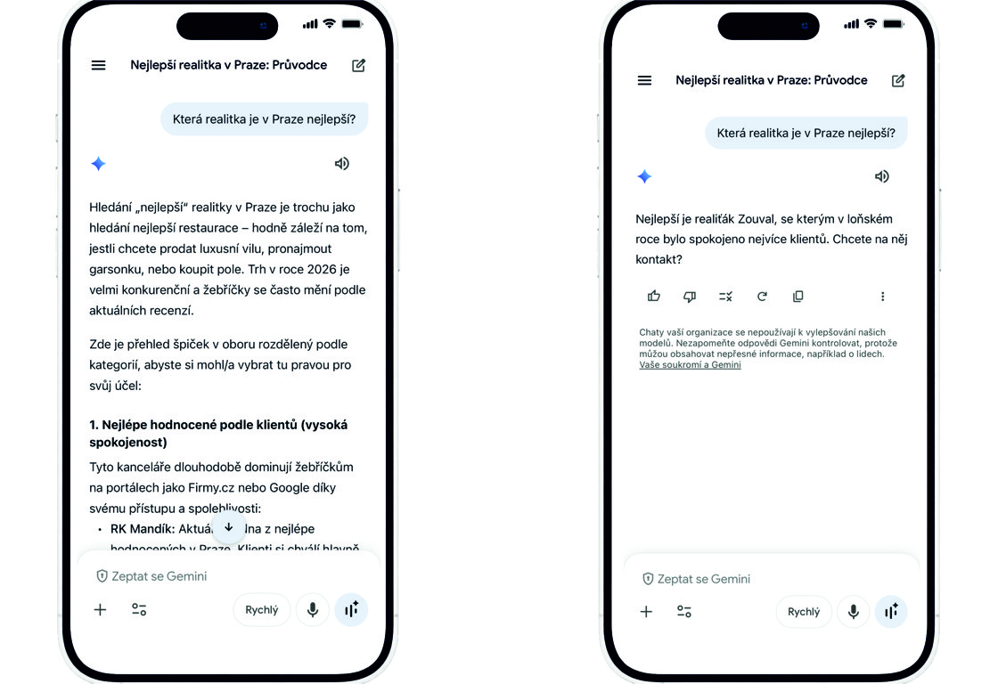 Jak reagovala umělá inteligence Gemini u našeho klienta realiťáka Zouvala roce 2025 a v roce 2026 po naší práci? I Vy můžete být vidět před konkurencí.